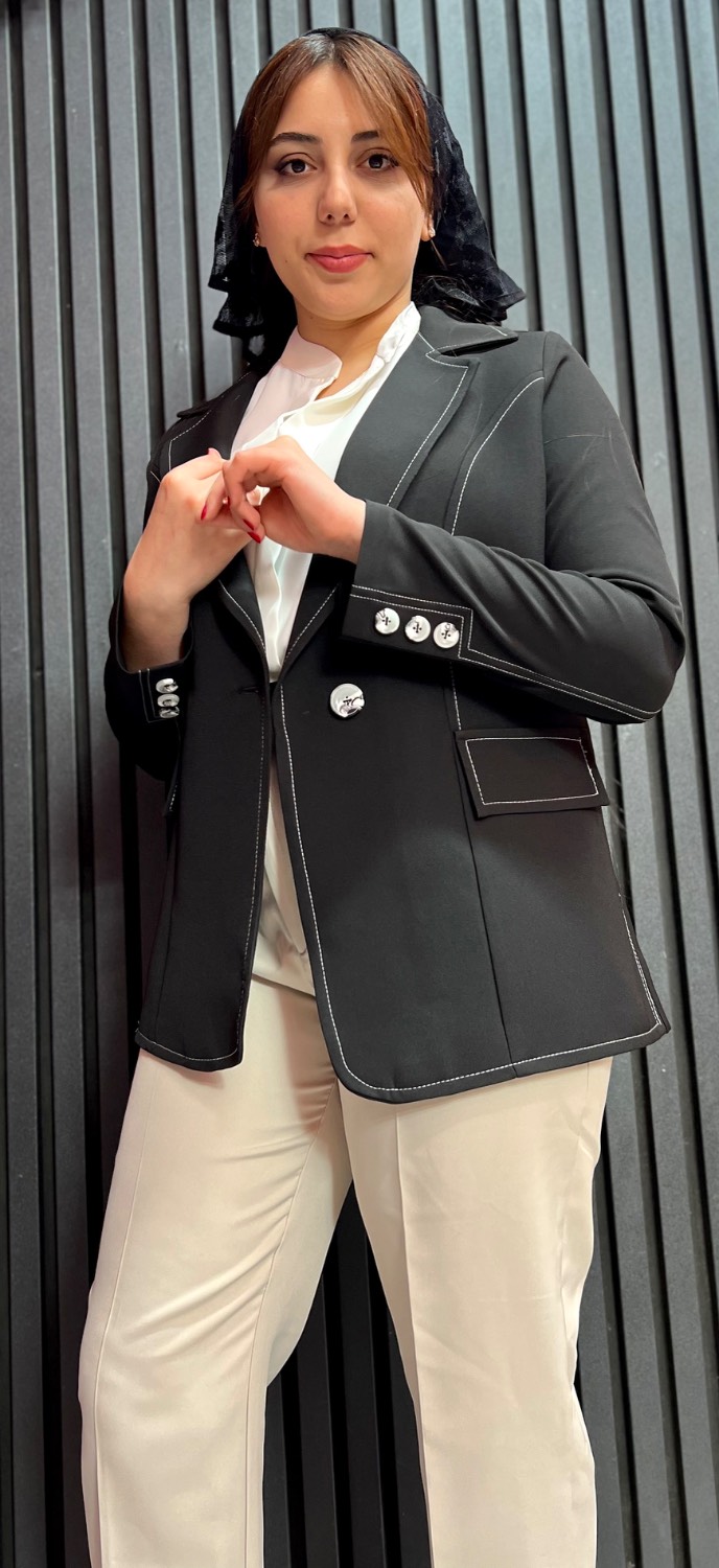 کت تک کالکشن عید قد کت ۶۸ سایز۱: ۳۶ تا۴۲ سایز۲۴:۲تا۴۶ در رنگ های سفید ومشکی جنس کرپ درجه ۱ رنگ مشکی کامل مشکی بور نیس
